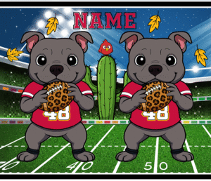 Cheer on your favorite team in paw-some style with our Game Day Pup 20 oz Tumbler! Featuring an adorable pitbull in red football jerseys, holding leopard print footballs, and standing proud on the field—this design is perfect for football-loving dog moms. A cactus and a little red bird give it that Arizona desert twist, while the falling autumn leaves add a touch of fall magic. Printed using vibrant sublimation on double-walled stainless steel, this tumbler keeps your drinks hot or cold and comes with a spill-proof lid and reusable straw. Add your name or your pup’s for a personalized touchdown!