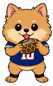 Choose from our 4 pre-made sporty pups or upgrade to a custom pup for just $10 more—perfect if you want your own dog repping your favorite game day gear!