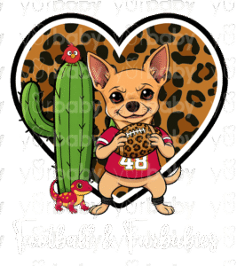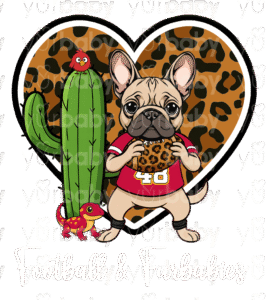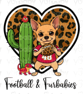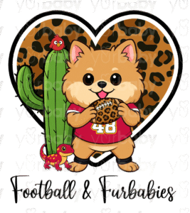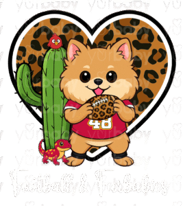 Choose from our 4 pre-made sporty pups or upgrade to a custom pup for just $10 more—perfect if you want your own dog repping your favorite game day gear!